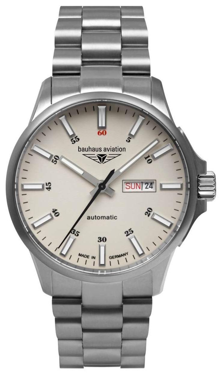 Этот аксессуар станет незаменимым помощником не только для пилотов, но и для любителей активного образа жизни. Автоматические оригинальные наручные часы. В механизме 21 камень. Запас хода 42 часа. Круглый титановый корпус с сатинированной поверхностью. Прямоугольные стрелки в стиле Baton и весь циферблат с люминесцентным покрытием, которое светится в темноте после непродолжительной зарядки на свету. Метки в виде штрихов. Окошко даты и дня недели находится в положении 3 часа. Рифленая заводная головка с защитой. Завинчивающаяся прозрачная задняя крышка. Титановый браслет.
