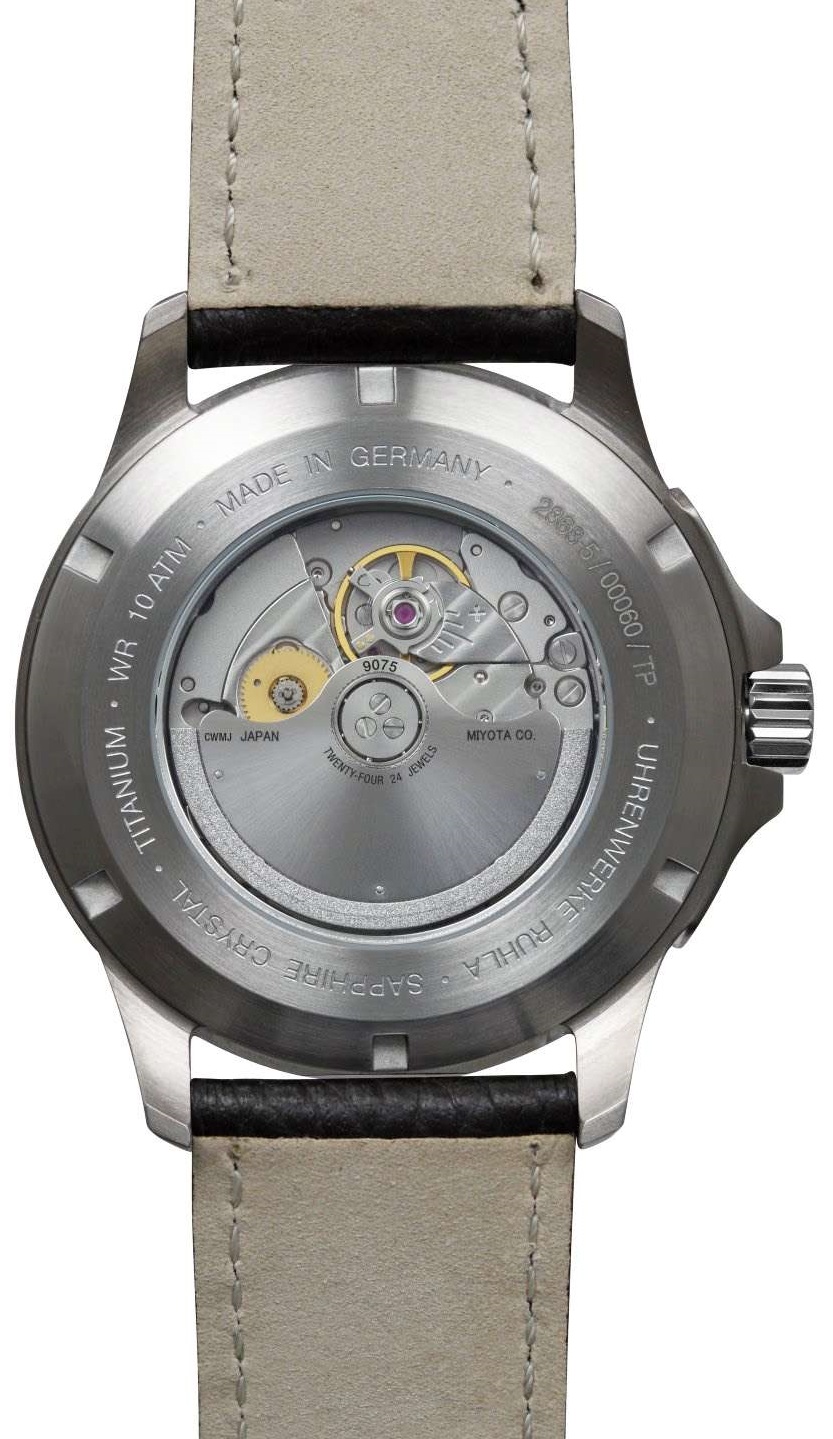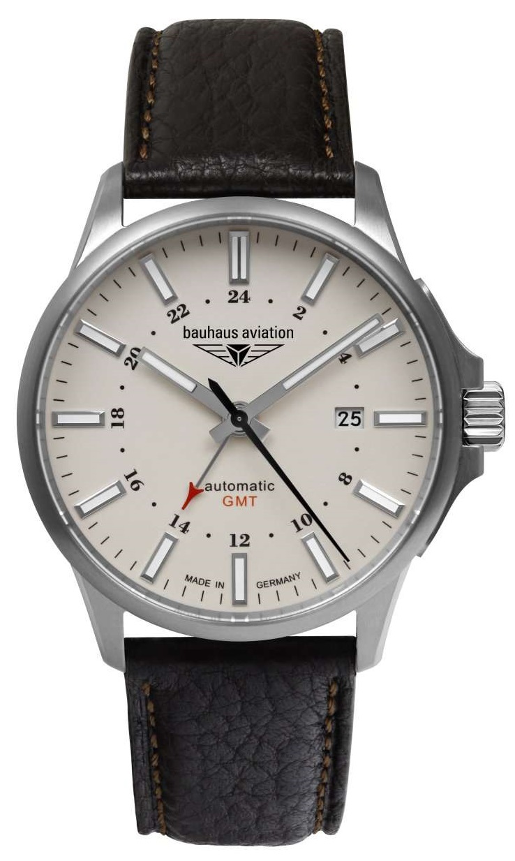 Этот аксессуар станет незаменимым помощником не только для пилотов, но и для любителей активного образа жизни. Автоматические оригинальные наручные часы. В механизме 24 камня. Круглый титановый корпус. Прямоугольные стрелки в стиле Baton и весь циферблат с люминесцентным покрытием, которое светится в темноте после непродолжительной зарядки на свету. Метки в виде штрихов. 12-ти и 24-х часовой формат времени. Окошко даты находится в положении 3 часа. Функция GMT. Рифленая заводная головка с защитой. Завинчивающаяся прозрачная задняя крышка. Кожаный ремешок.