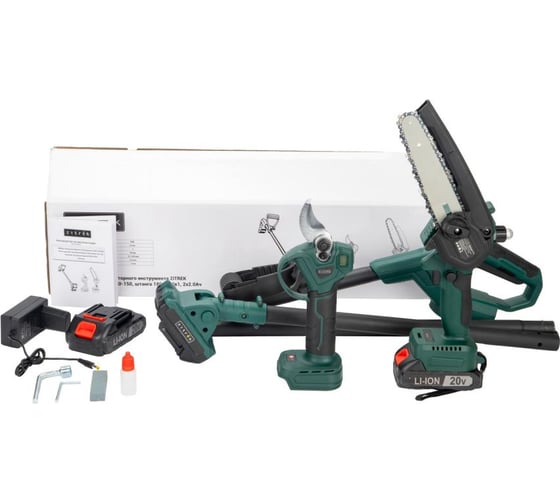 - КомплектацияСекатор аккумуляторный - 1 шт, Пила цепная аккумуляторная - 1 шт, Удлинительная штанга - 1 шт,АКБ - 2 шт,Зарядное устройство - 1 шт, Набор ключей - 1 шт, Масленка - 1 шт, Точильный камень - 1 шт, Руководство по эксплуатации - 1 шт.