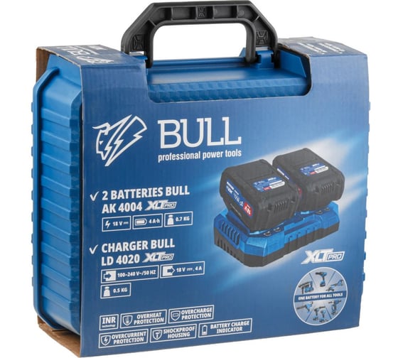 Набор BULL 2х4 А*ч аккумулятор и зарядное устройство 2х4 А XLTpro в чемодане SET 2329062