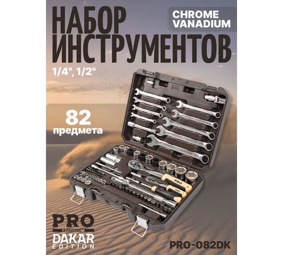 Набор головок и ключей с трещоткой STARTUL 1/4", 1/2" 6 граней Dakar 82 пр PRO-082DK ЦЗ-0000257040