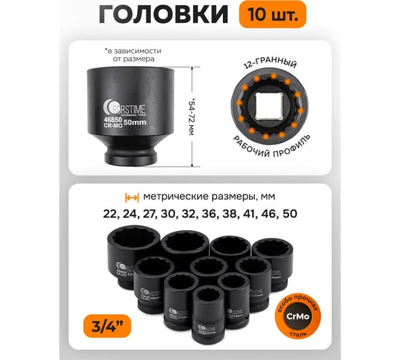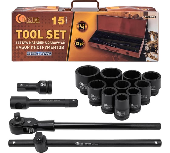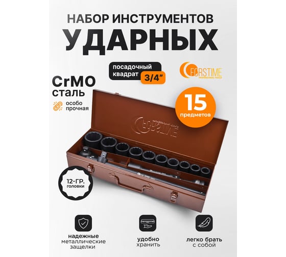 Набор инструментов 15 предметов 3/4 (12гр.) FORSTIME FT-6143-9MPB(62523)