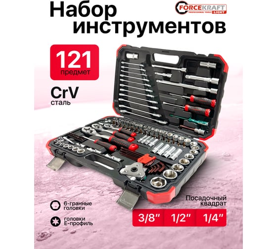 Набор инструментов Forcekraft 121 предмет 1/4 3/8 1/2 6гр FK LIGHT-41212-5(63679)