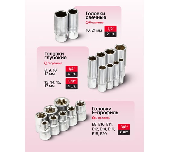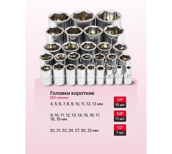 - Размер посадки головки1/4; 1/2; 3/8 дюйма