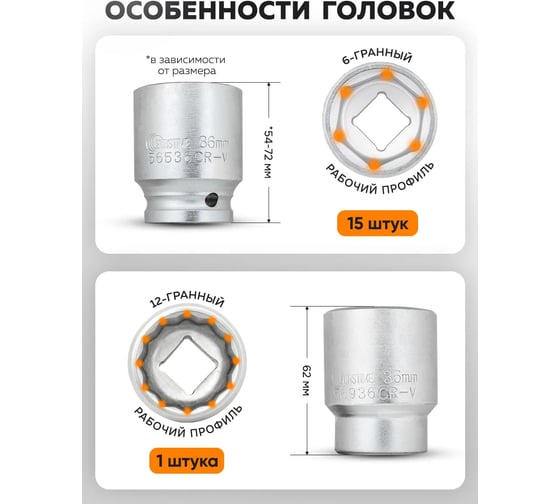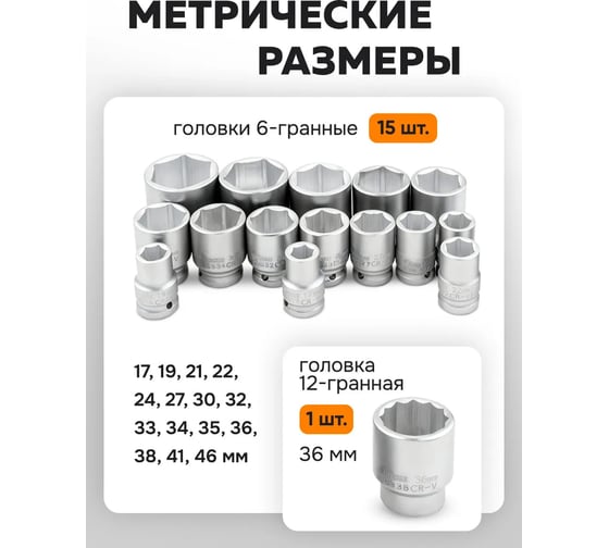 - Дюймовые головки в комплектенет