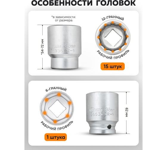 Набор инструментов FORSTIME 21 предмет 3/4 6гр 12гр FT-6212-9(63619)