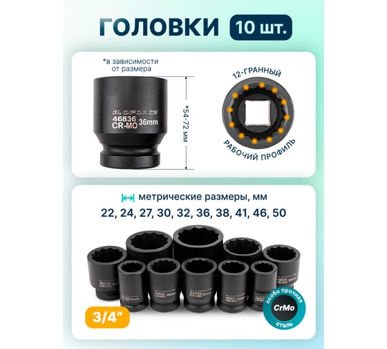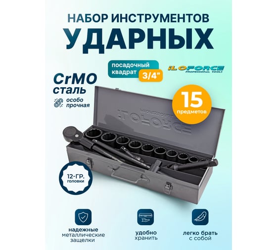 Набор инструментов iLOFORCE 15 предметов 3/4 (12гр.) IF-6143-9MPB(62526)