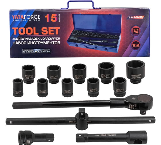 Набор инструментов YATAFORCE 15 предметов, 3/4, 12граней YF-6143-9MPB(62527)