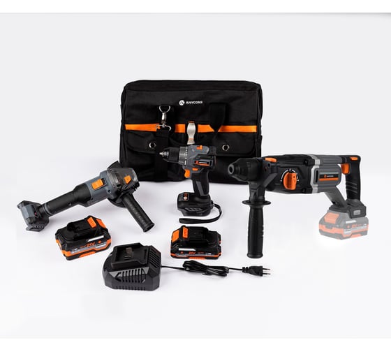 Набор из 3-х инструментов Anycons AC-ST (Шуруповерт, УШМ, Перфоратор, акб*4Ач + акб*2Ач) 310T24B