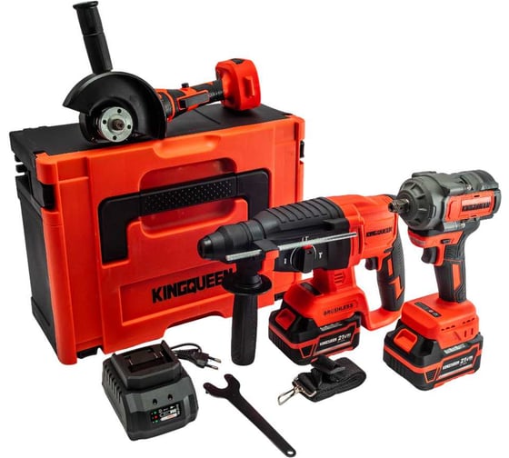 Набор KINGQUEEN 3 пред, 2 АКБ 21В, УШМ 125мм, Гайковерт 500Нм, Перфоратор 2Дж KQ-TS312