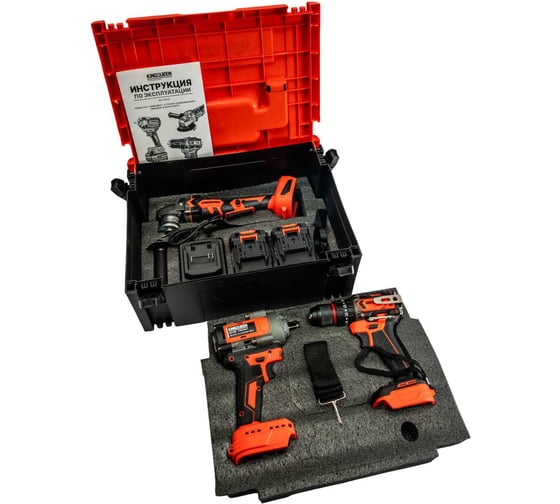 - КомплектацияУШМ 125мм, Гайковерт 500Нм, Шуруповерт 50Нм