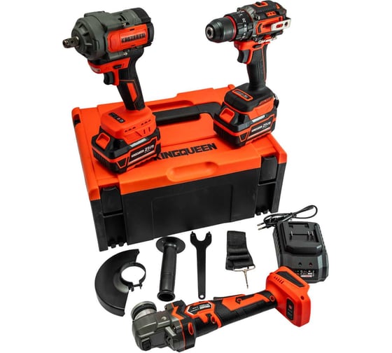 Набор KINGQUEEN 3 пред, 2 АКБ 21В, (УШМ 125мм, Гайковерт 500Нм, Шуруповерт 50Нм) KQ-TS313