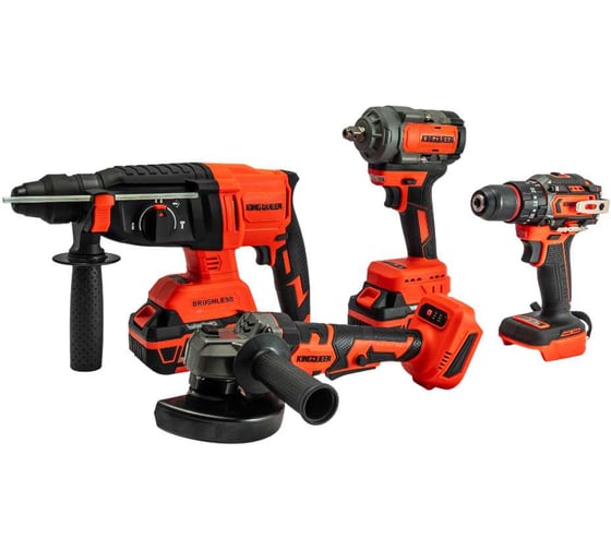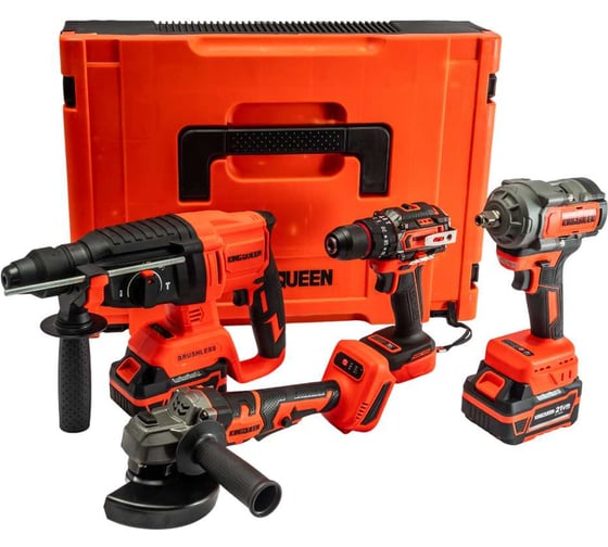 Набор KINGQUEEN 4 пред, 2 АКБ, УШМ 125мм, Гайковерт 500Нм, Шуруповерт 50Нм, Перфоратор KQ-TS411