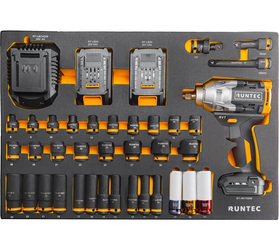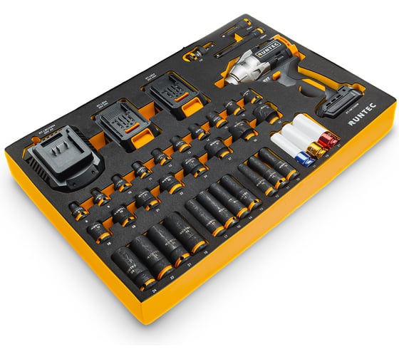 Набор с аккумуляторным гайковертом RUNTEC ударными головками и аксессуарами 1/2, 8-32 мм, CrMo в ложементе EVA, 39 пр. RT-IWIS1E39F