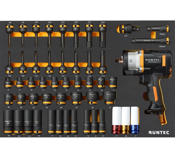 Набор с пневмогайковертом RUNTEC ударными головками и аксессуарами 1/2, 8-32 мм, CrMo в ложементе EVA, 53 предмета RT-ISPE53F