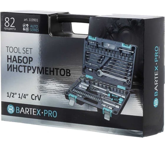 Набор слесарных инструментов BARTEX 1/2, 1/4, 6-гранный, сталь, кейс, 82 пр 319901