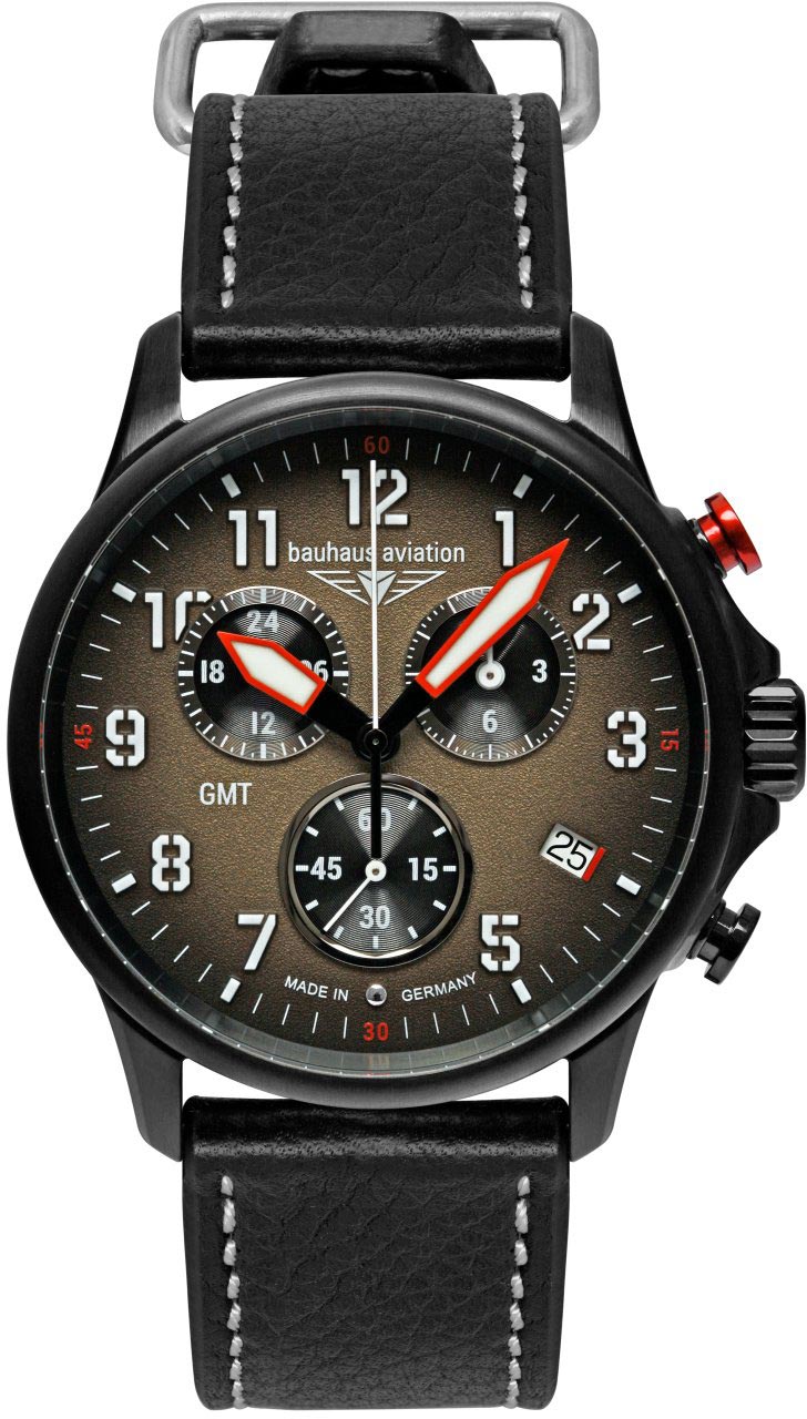 Мужские наручные часы-хронограф с секундомером Aviation Flight Control. Круглый стальной корпус c матовой и полированной отделкой. Второй часовой пояс в 24-х часовом формате времени. Матовый градиентный циферблат с зернистой фактурой. Метки в виде арабских цифр. Окошко даты находится в положении 4 часа.