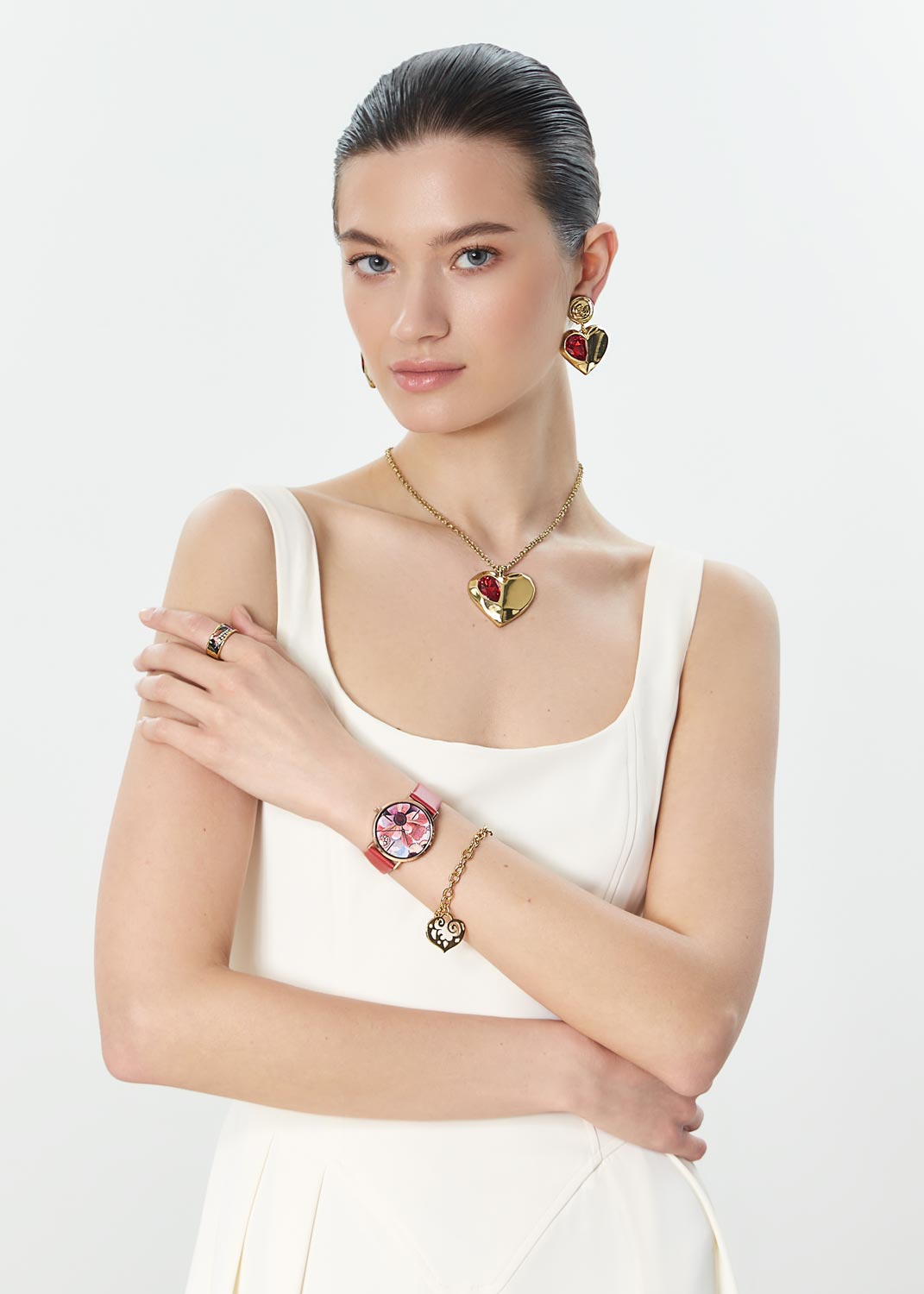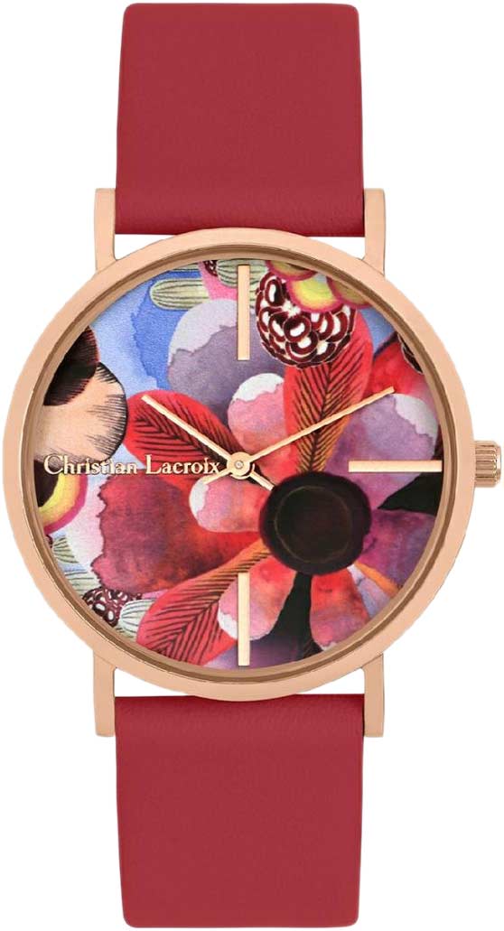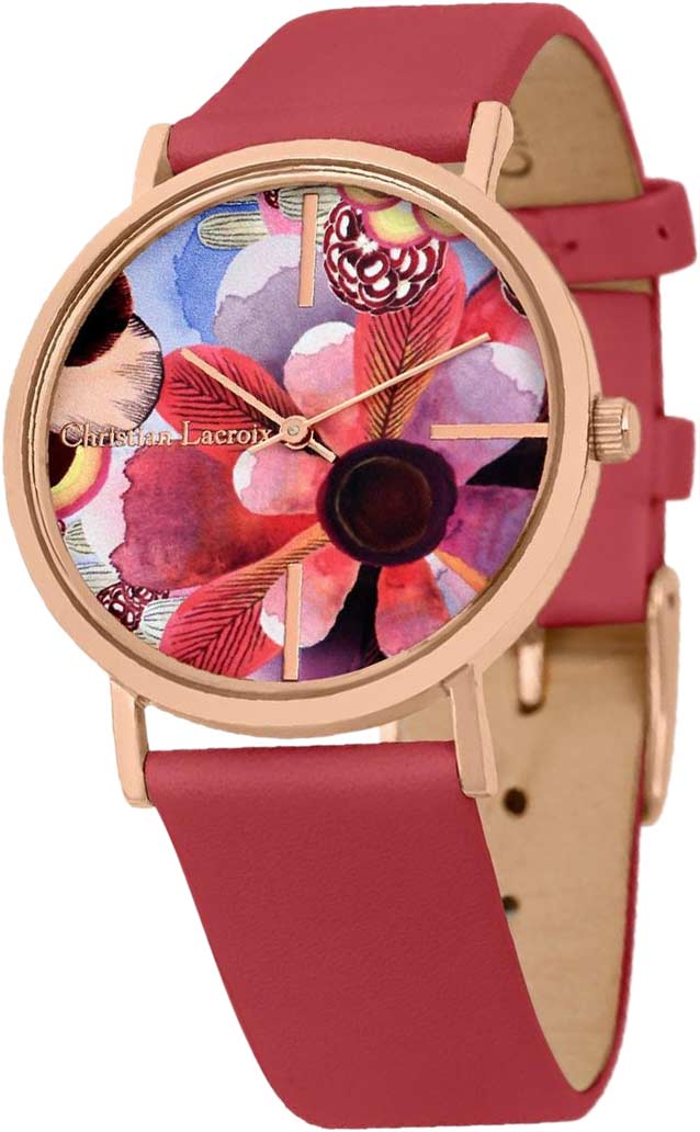 Женские наручные часы. Круглый корпус из нержавеющей стали. Циферблат с цветочным дизайном защищен минеральным стеклом. Метки в виде штрихов. Рифленая заводная головка. Кожаный ремешок с классической застежкой.