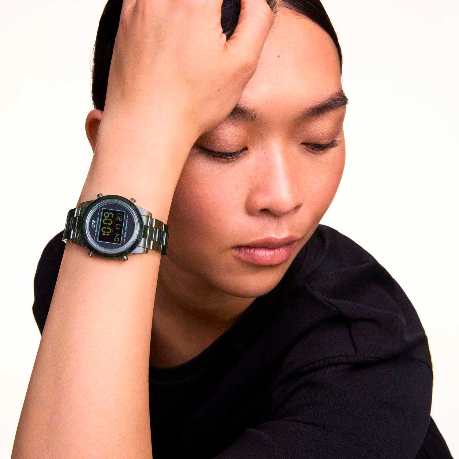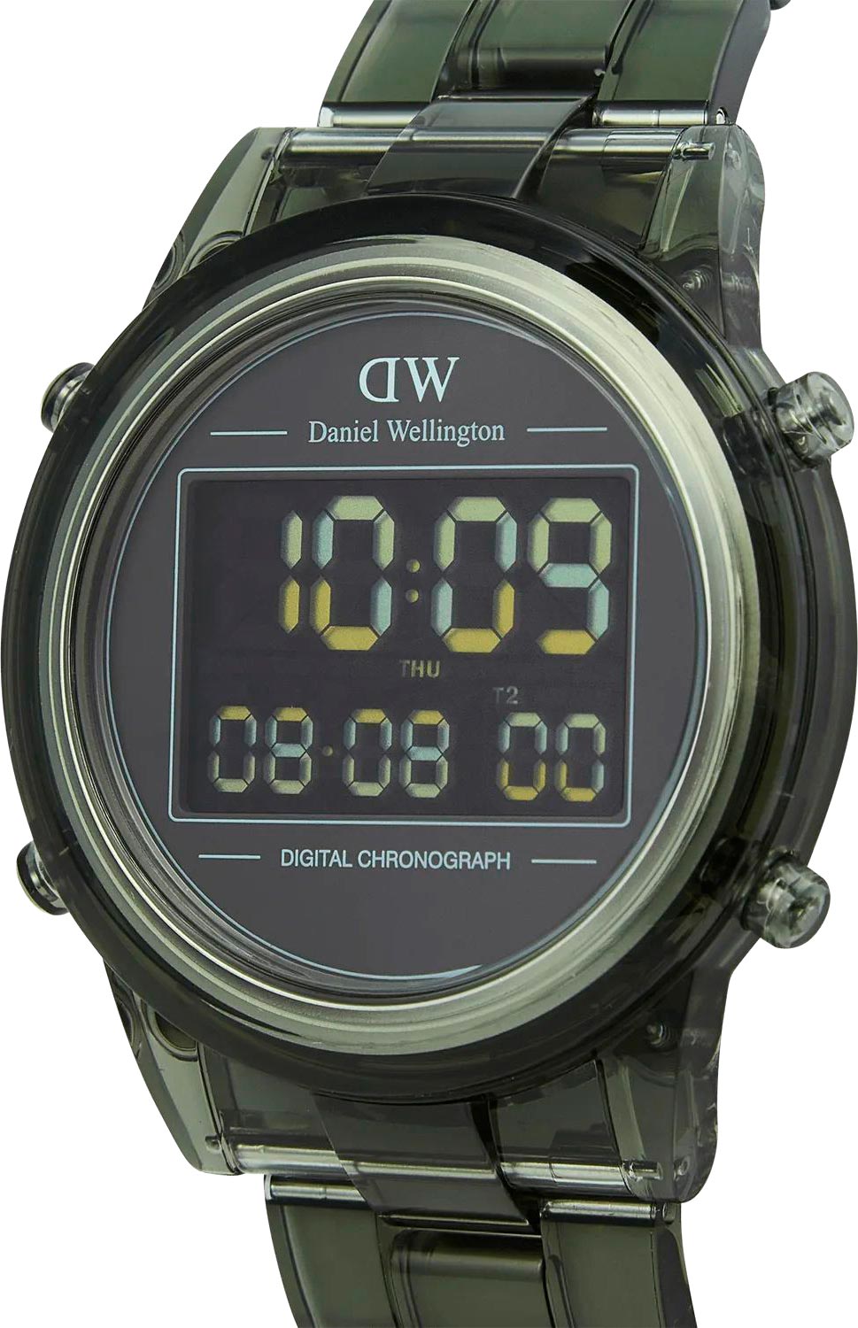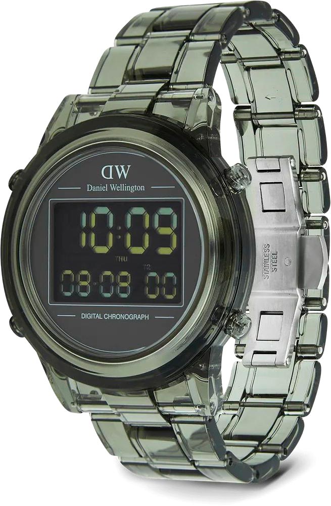 Наручные женские цифровые часы-хронограф Retro Digital Dark Green. Круглый корпус из прозрачного биопластика. Цифровой механизм. Циферблат с 10-значным двойным дисплеем времени. Автоматический календарь с ежедневным будильником и ежечасным сигналом. Браслет из биопластика с раскладывающейся застежкой. Имеется мужской вариант модели DW00100768.