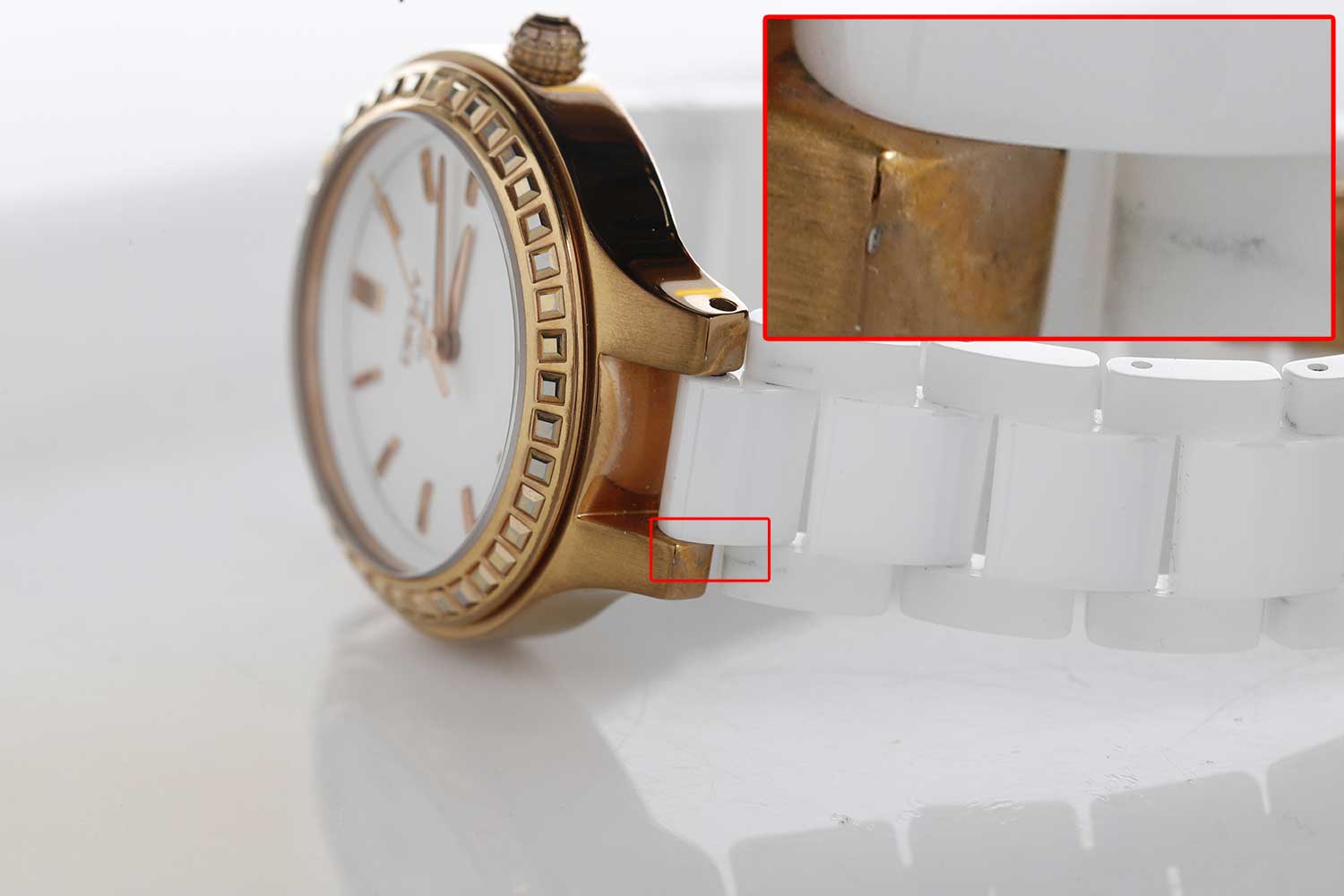 1. Царапины на корпусе, потертости на браслете и застежке.