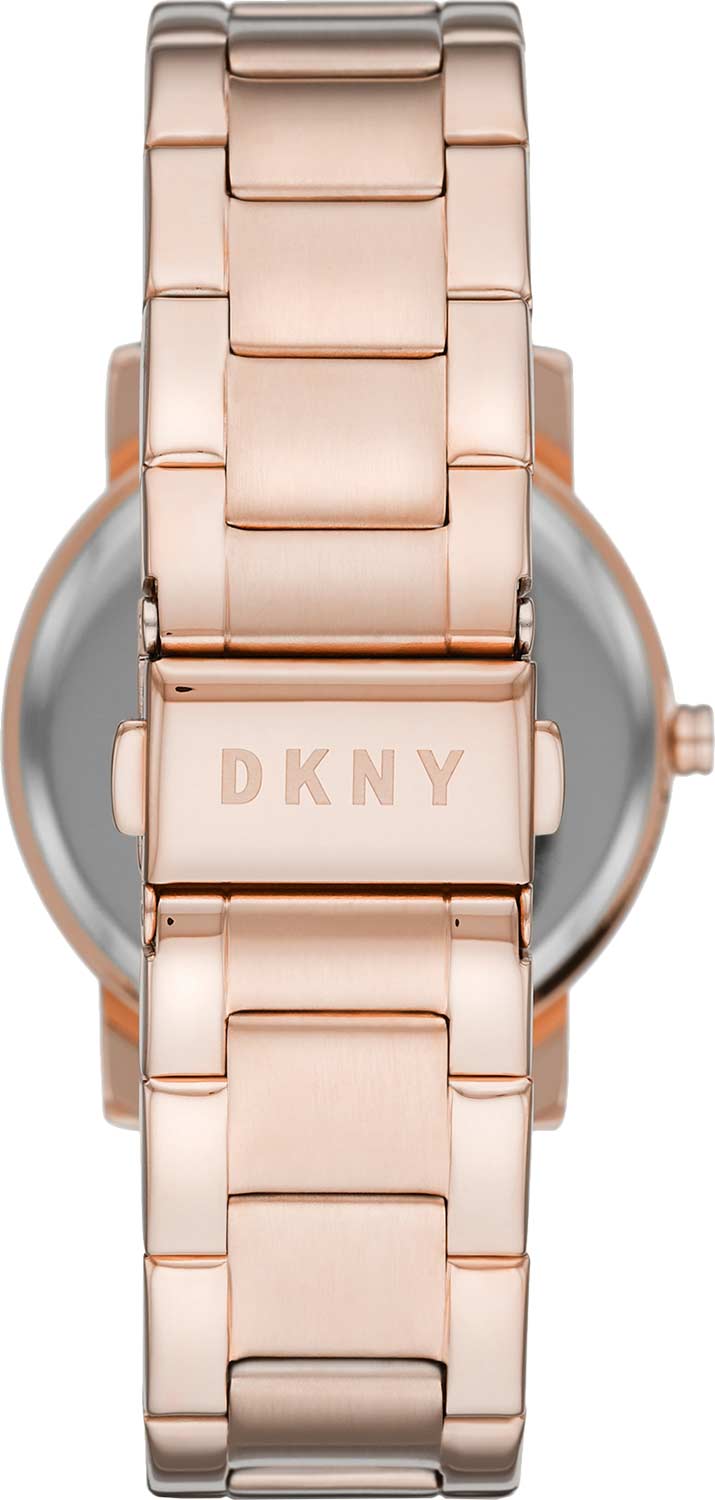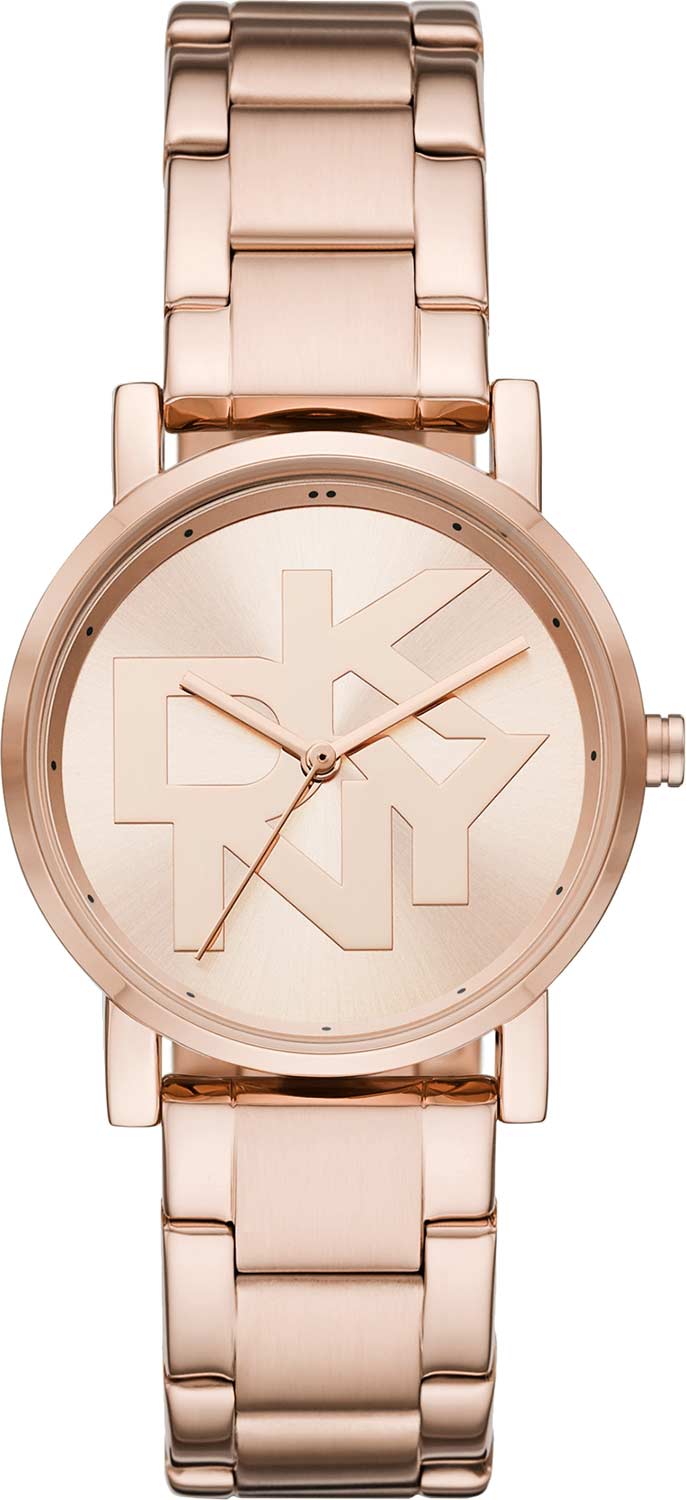 Этот модный аксессуар идеально впишется в ваш элегантный и стильный образ. Soho. Женские наручные часы. Циферблат украшен большим логотипом DKNY. Метки в виде точек. Браслет с раскладывающейся застежкой.