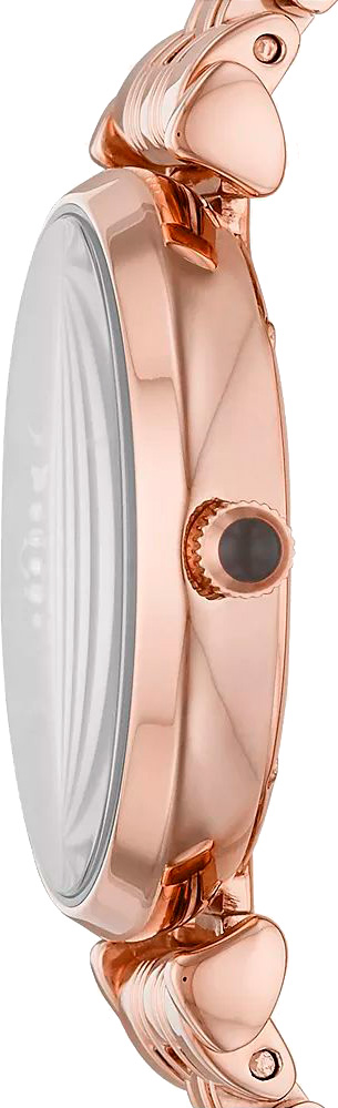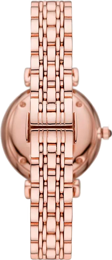 Женские кварцевые часы Gianni T-Bar. Круглый корпус из нержавеющей стали цвета розового золота. Коричневый циферблат, по центру инкрустированный кристаллами, украшен логотипом Emporio Armani Eagle в положении 12 часов и защищен минеральным стеклом, устойчивым к царапинам. Метки в виде штрихов и римских цифр в положениях 3,6 и 9 часов. Секундная стрелка отсутствует. Рифленая заводная головка украшена камнем в форме кабошона. Браслет из нержавеющей стали цвета розового золота с застежкой-бабочкой.