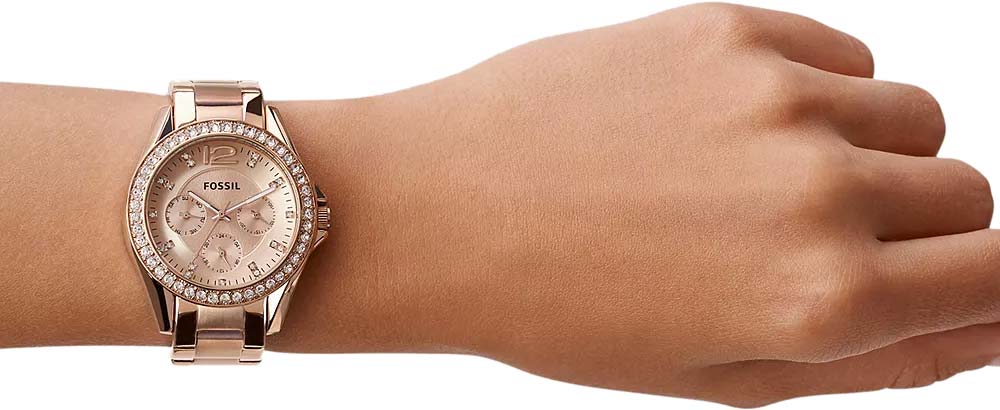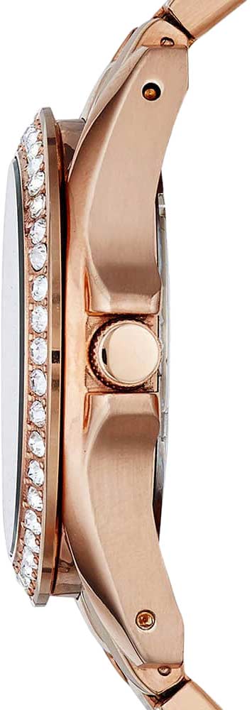 Идеальный аксессуар для повседневного общения со временем. С ним вы не останетесь незамеченной. Riley Multifunction Stainless Steel Watch - Rose. Женские часы с круглым стальным корпусом. 12-ти и 24-х часовой формат времени. Циферблат выполнен по технологии Sunray (солнечные лучи). Метки в виде штрихов, инкрустированных кристаллами, и арабской цифры 12. День недели и число вынесены на отдельные циферблаты. Рифленая заводная головка с защитой. Браслет с раскладывающейся застежкой.