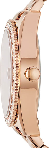Строгий дизайн этих часов с достоинством украсит запястье их обладательницы. Scarlette Three-Hand Date Rose Gold-Tone Stainless Steel Watch. Окошко даты с увеличительным стеклом.