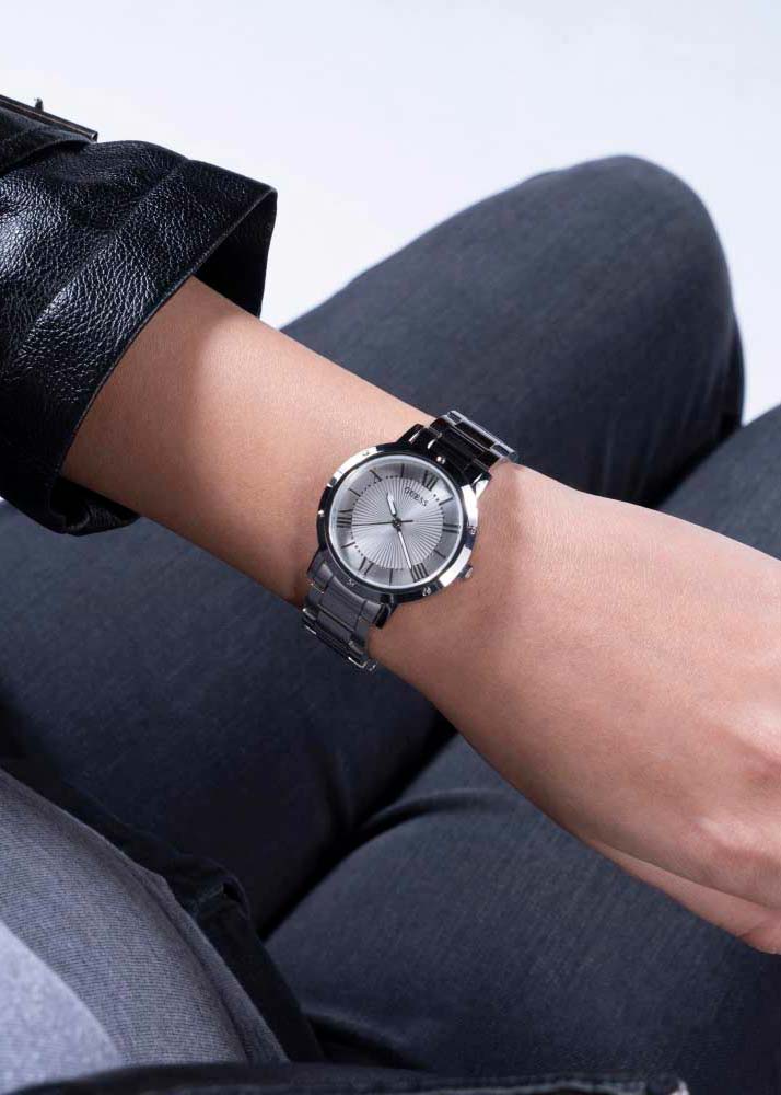 Элегантный женский аксессуар добавит вашему образу особый шарм. Dawn. Женские часы с круглым корпусом. Циферблат выполнен по технологии Sunray (солнечные лучи). Метки в виде штрихов и римских цифр. Безель украшен декоративными винтами. Браслет с раскладывающейся застежкой.