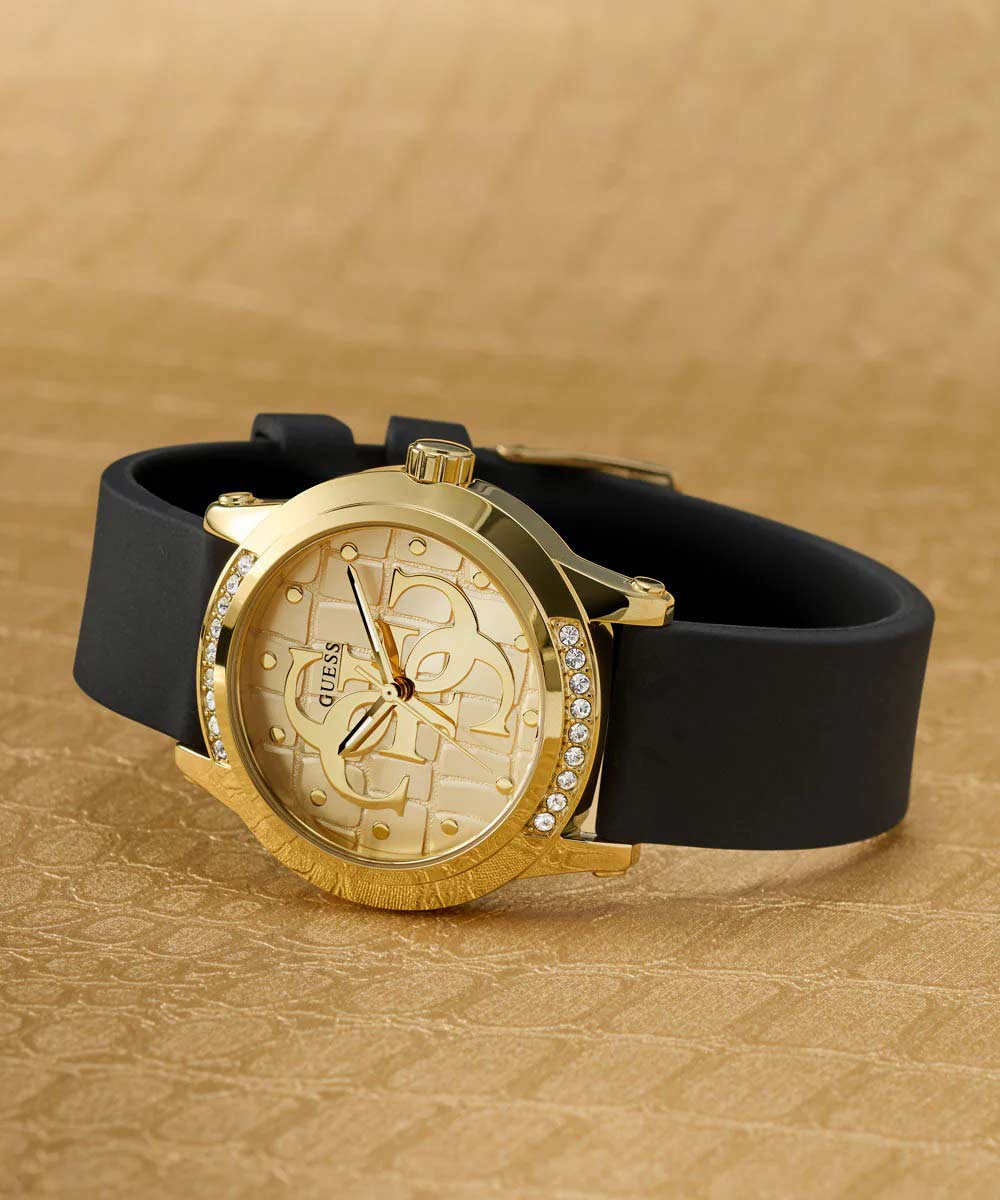 Женские наручные часы Annette. Круглый стальной корпус с полированной поверхностью украшен кристаллами. Фактурный циферблат с метками в виде точек. Рифленая заводная головка с защитой. Силиконовый ремешок с классической застежкой.