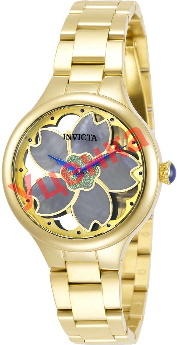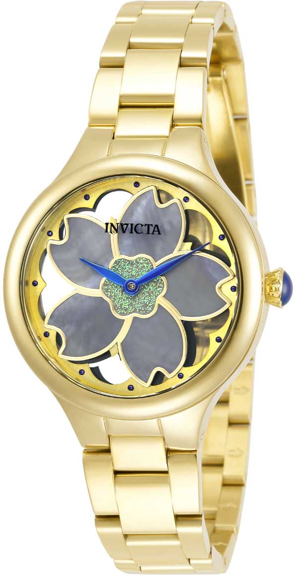 Wildflower. Женские наручные часы. Круглый стальной корпус с минеральным стеклом. Перламутровый циферблат выполнен в форме цветка с прозрачной зоной меток. Листовидные стрелки в стиле Feuille. Метки в виде точек. Рифленая заводная головка украшена камнем в форме кабошона. Надежный стальной браслет с раскладывающейся застежкой. Производитель оставляет за собой право вносить изменения во внешний вид часов. Уточняйте при заказе, какой вариант в наличии в данный момент.