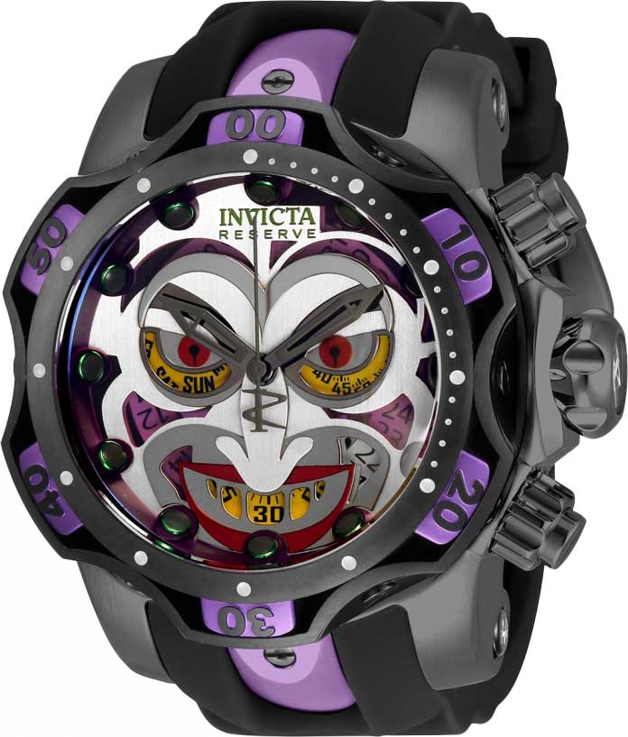 Массивный корпус и броский циферблат олицетворяют мужественность и надежность. Практичный выбор мужчин уверенных в себе и своих амбициях. DC Comics Joker. Лимитированная серия - 4000 экземпляров. Вдохновением для создания модели послужил антигерой из комиксов DC Comics Joker (Джокер), который является заклятым врагом Бэтмена. Часы-хронограф с секундомером. Циферблат с метками в виде точек выполнен в виде лица Джокера. Метки и стрелки с серым люминесцентным покрытием New Lite, которое светится в темноте после непродолжительной зарядки на свету. Окошко даты находится в положении между отметками 4 и 5 часов. День недели вынесен на отдельный циферблат. Безель с алюминиевой вставкой. Завинчивающаяся заводная головка. Ремешок с классической застежкой. Производитель оставляет за собой право вносить изменения во внешний вид часов. Уточняйте при заказе.