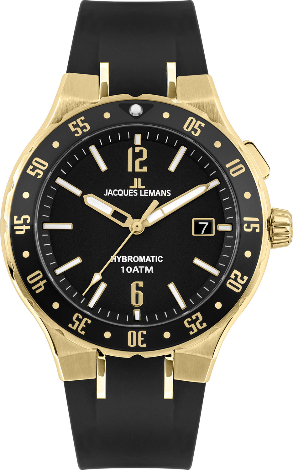 Спортивный дизайн этих часов понравится активным и энергичным парням. Hybromatic. Мужские наручные часы с уникальной технологией Jacques Lemans Hybromatic, которая сочетает в себе функциональность автоматических часов с точностью кварцевых часов. Движение руки приводит в движение маховик, генерирующий электрическую энергию, которая используется для запуска часов. Запас хода 4320 часов (180 дней). Аккумуляторные батареи рассчитаны на 12-15 лет. Круглый стальной корпус с минеральным стеклом. Рифленый безель с минутной шкалой. Метки в виде штрихов, 6 и 12 часовые метки в виде арабских цифр. Метки и стрелки с люминесцентным покрытием, которое светится в темноте после непродолжительной зарядки на свету. Окошко даты находится в положении 3 часа. Рифленая заводная головка. Удобный силиконовый ремешок с классической застежкой.