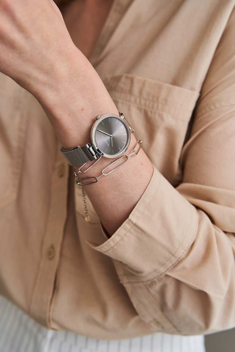 Аккуратный аксессуар с классическими чертами станет вашим проводником в вопросах времени. Milano. Женские часы со стальным корпусом. Циферблат выполнен по технологии Sunray (солнечные лучи). Метки в виде штрихов. Стальной браслет миланского плетения.