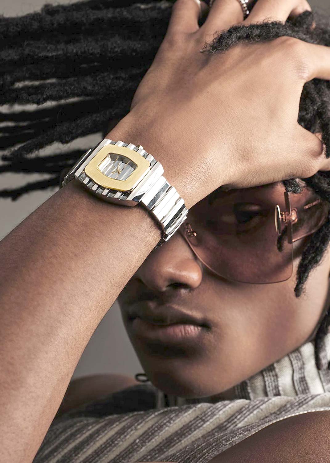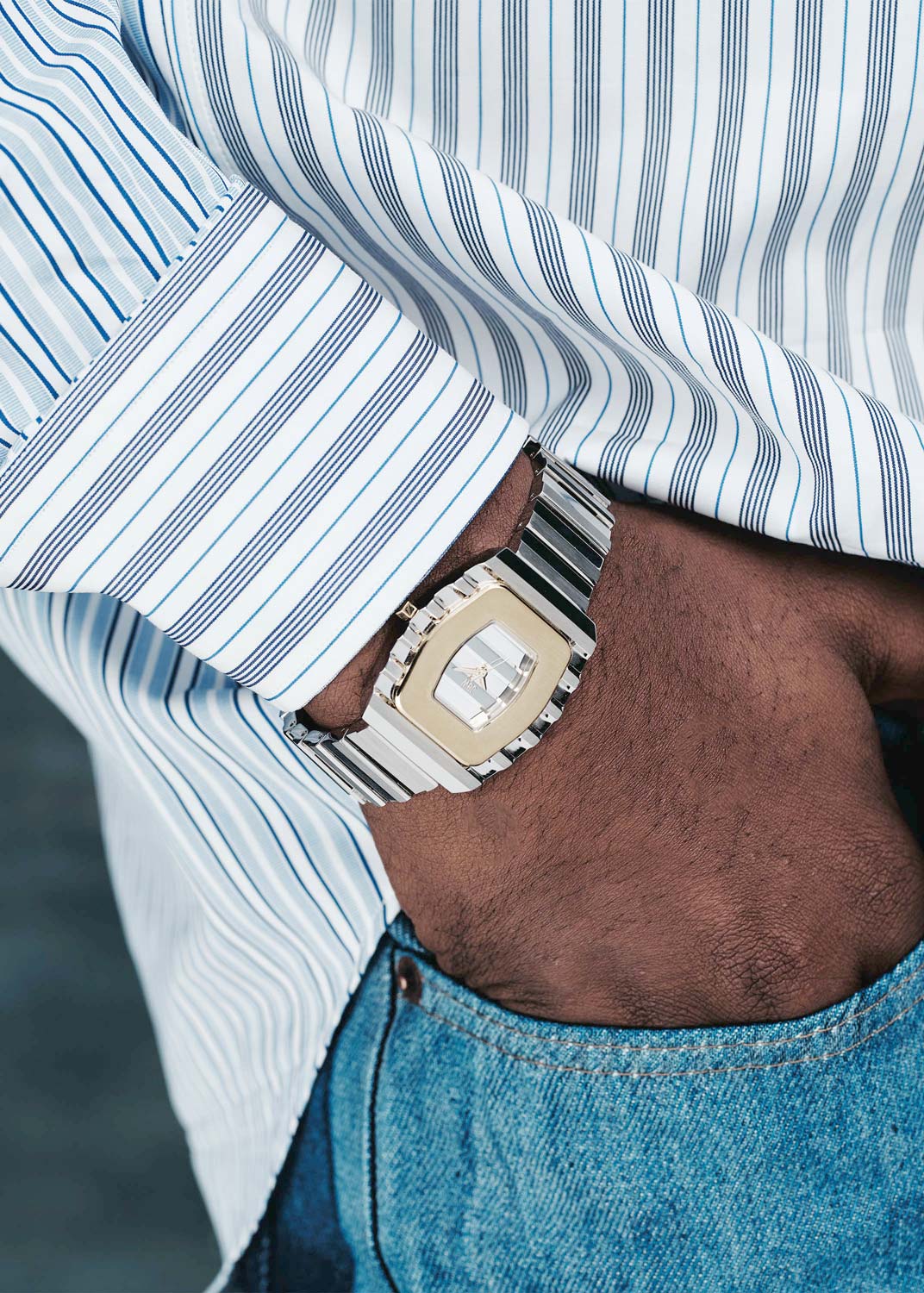 Циферблат без меток украшен фирменным логотипом. Мечевидные стрелки в стиле Sword. Граненая заводная головка. Стальная задняя крышка крепится на 4-х винтах. Стальной браслет с раскладывающейся застежкой.