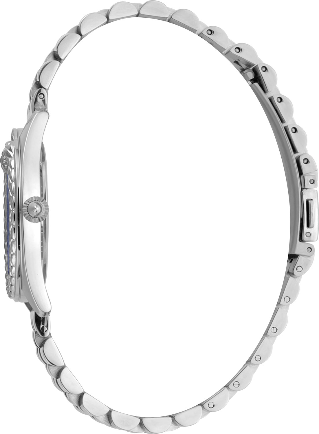 Часы, декорированные кристаллами, станут отличным подарком для прекрасных леди, которые выбирают оригинальный стиль. JC Prestigio. Кварцевые оригинальные наручные часы. Круглый стальной корпус c полированной поверхностью. Безель и циферблат украшены паве из кристаллов Swarovski и выполнены в фирменном змеином стиле. Секундная стрелка украшена элементом в форме змеи. Метки в виде штрихов. Рифленая конусообразная заводная головка. Задняя крышка с гравировкой. Надежный стальной браслет с раскладывающейся застежкой.