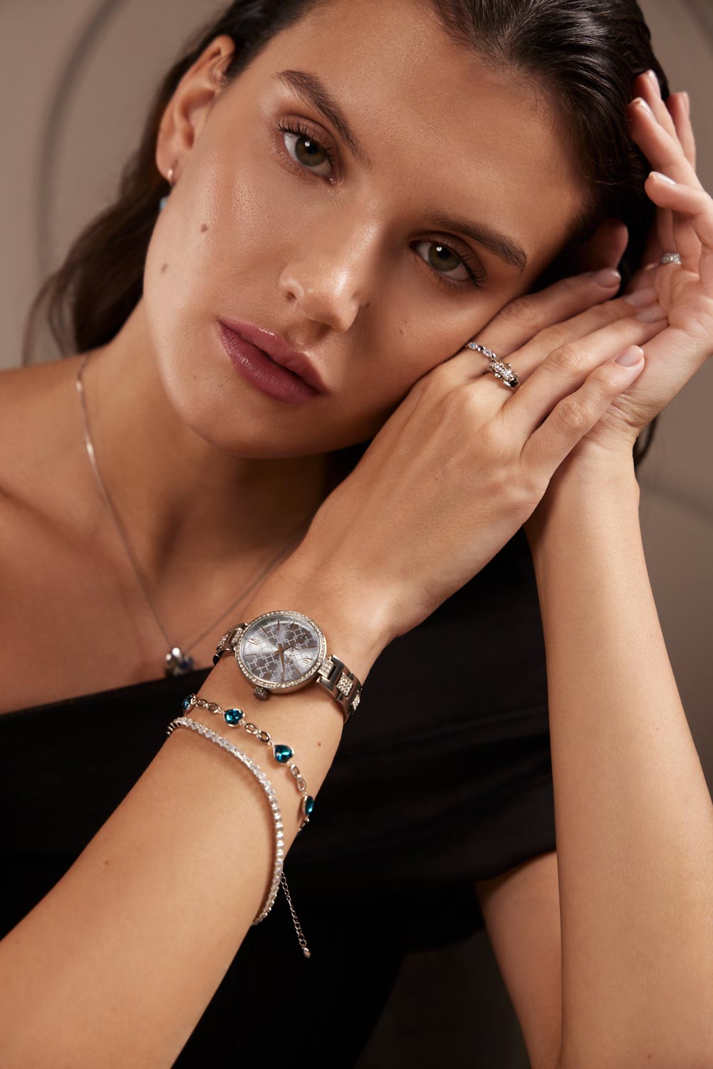 - Камень-вставкакорпус и браслет украшены кристаллами