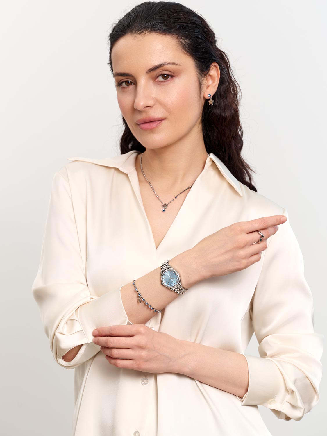 - Камень-вставкакорпус и циферблат украшены кристаллами