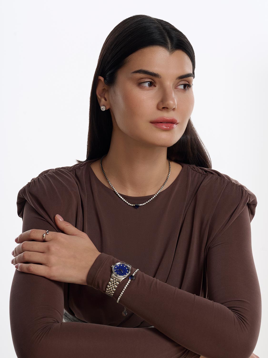 Современные часы со стильным дизайном станут ярким акцентом вашего модного образа. Женские кварцевые часы Casual Tiny. Циферблат с метками в виде точек, украшеных кристаллами. Надежный стальной браслет с раскладывающейся застежкой.