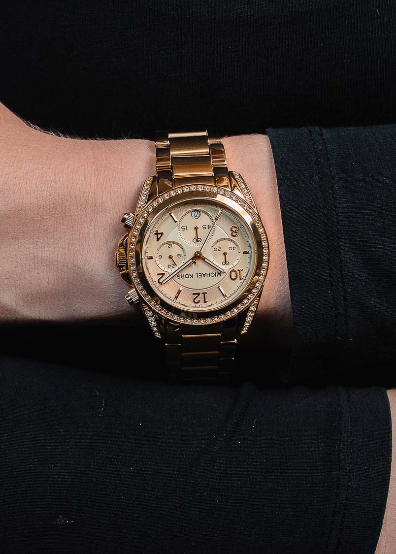 Восхитительные часы добавят блеска и роскоши в ваш повседневный образ. Женские часы-хронограф с секундомером Blair. Круглый стальной корпус с PVD покрытием цвета желтого золота декорирован кристаллами. Циферблат с радиальным узором в зоне меток защищен минеральным стеклом. Метки в виде штрихов и арабских цифр. Стрелки с люминесцентным покрытием, которое светится в темноте после непродолжительной зарядки на свету. Окошко даты находится в положении 6 часов. 12-ти и 24-х часовой формат времени. Рифленая заводная головка с защитой. Стальной браслет с PVD покрытием цвета желтого золота и раскладывающейся застежкой.