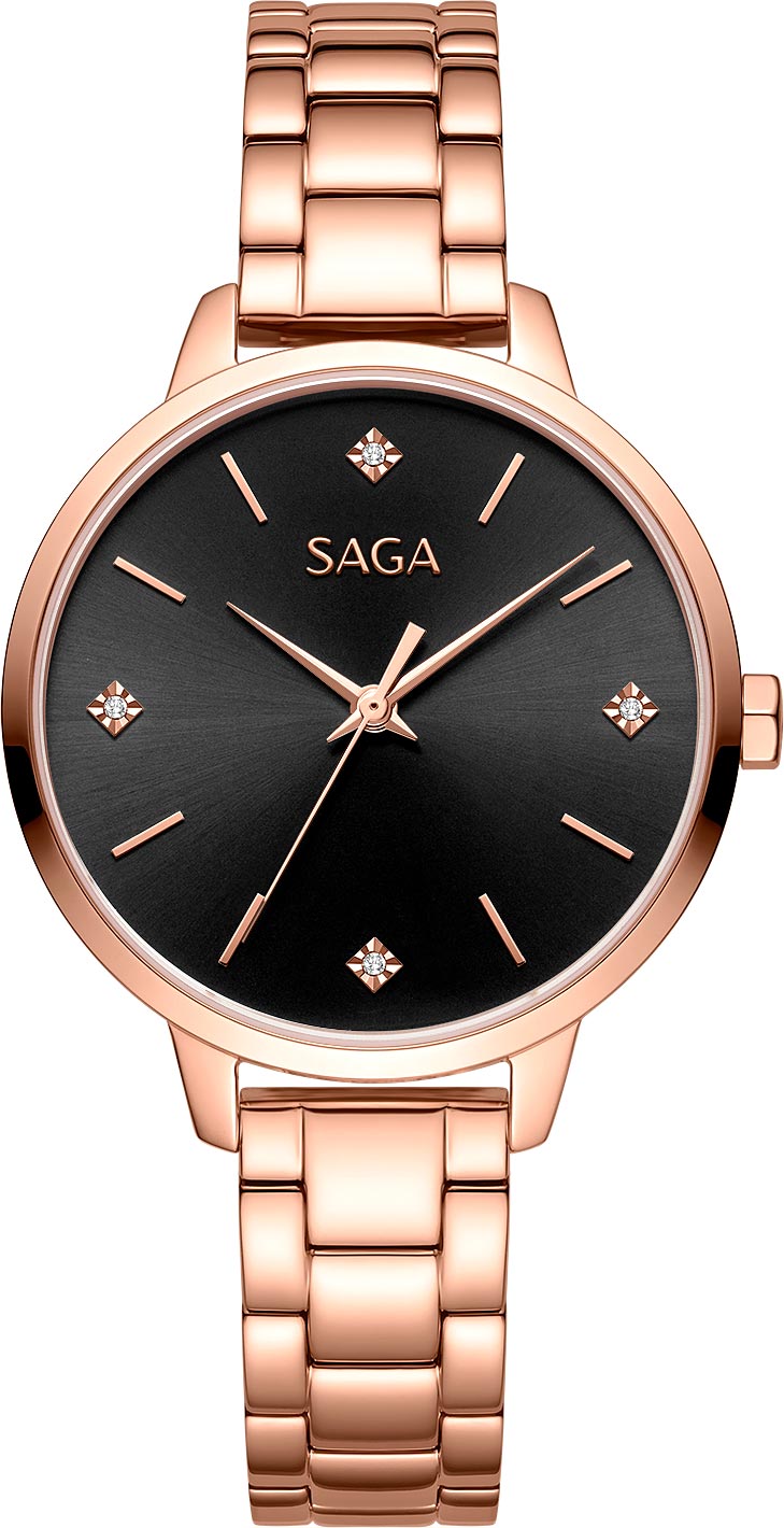 Аккуратные и лаконичные наручные часы прекрасно дополнят повседневный образ настоящей леди. Наручные женские часы с круглым стальным корпусом. Циферблат выполнен по технологии Sunray (солнечные лучи) и украшен логотипом Saga. Накладные метки в виде штрихов и точек с кристаллами. Клиновидные стрелки в стиле Dauphine. Рифленая заводная головка. Задняя крышка украшена гравировкой. Стальной браслет с раскладывающейся застежкой.