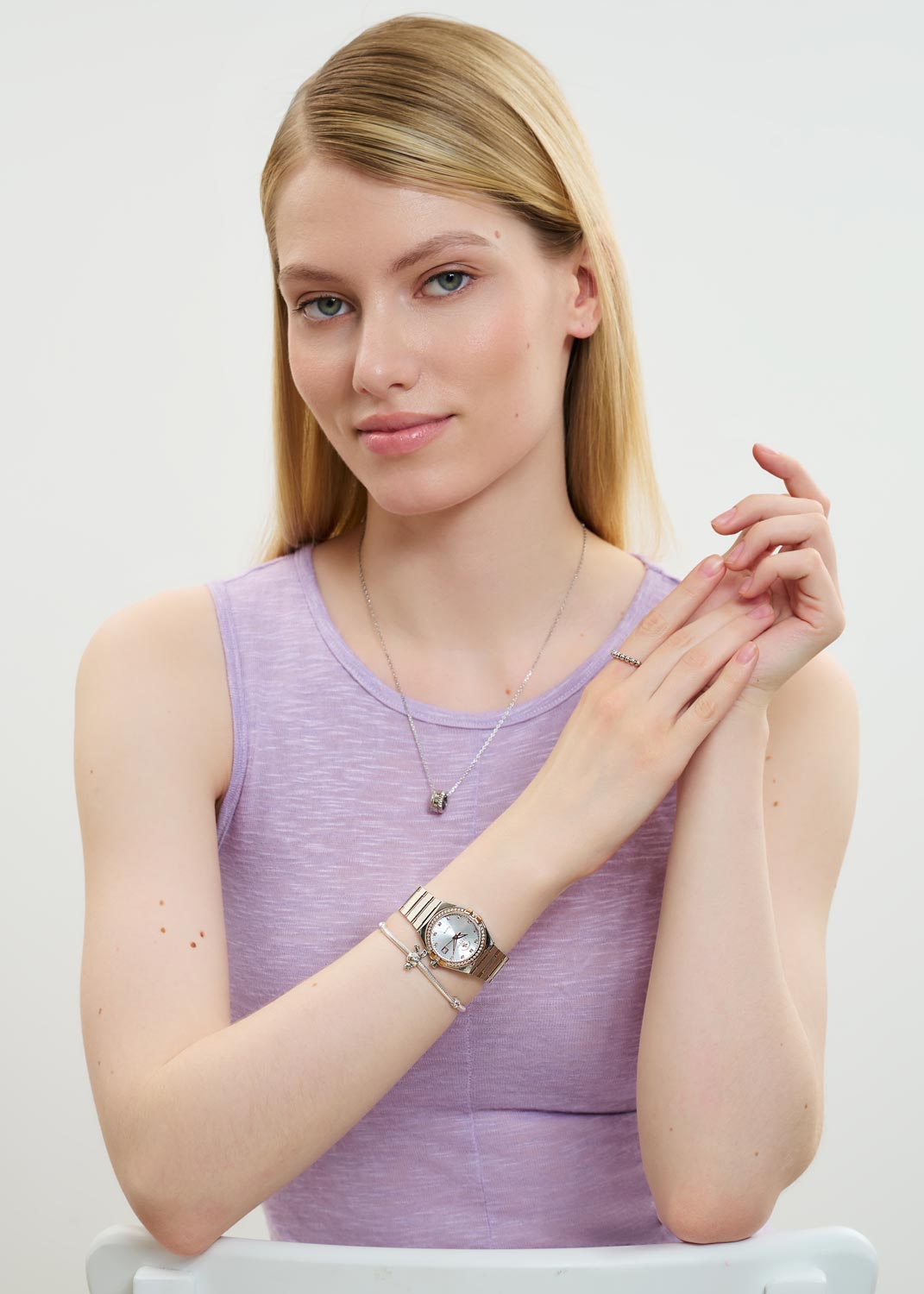 - Камень-вставкакорпус и циферблат украшен кристаллами