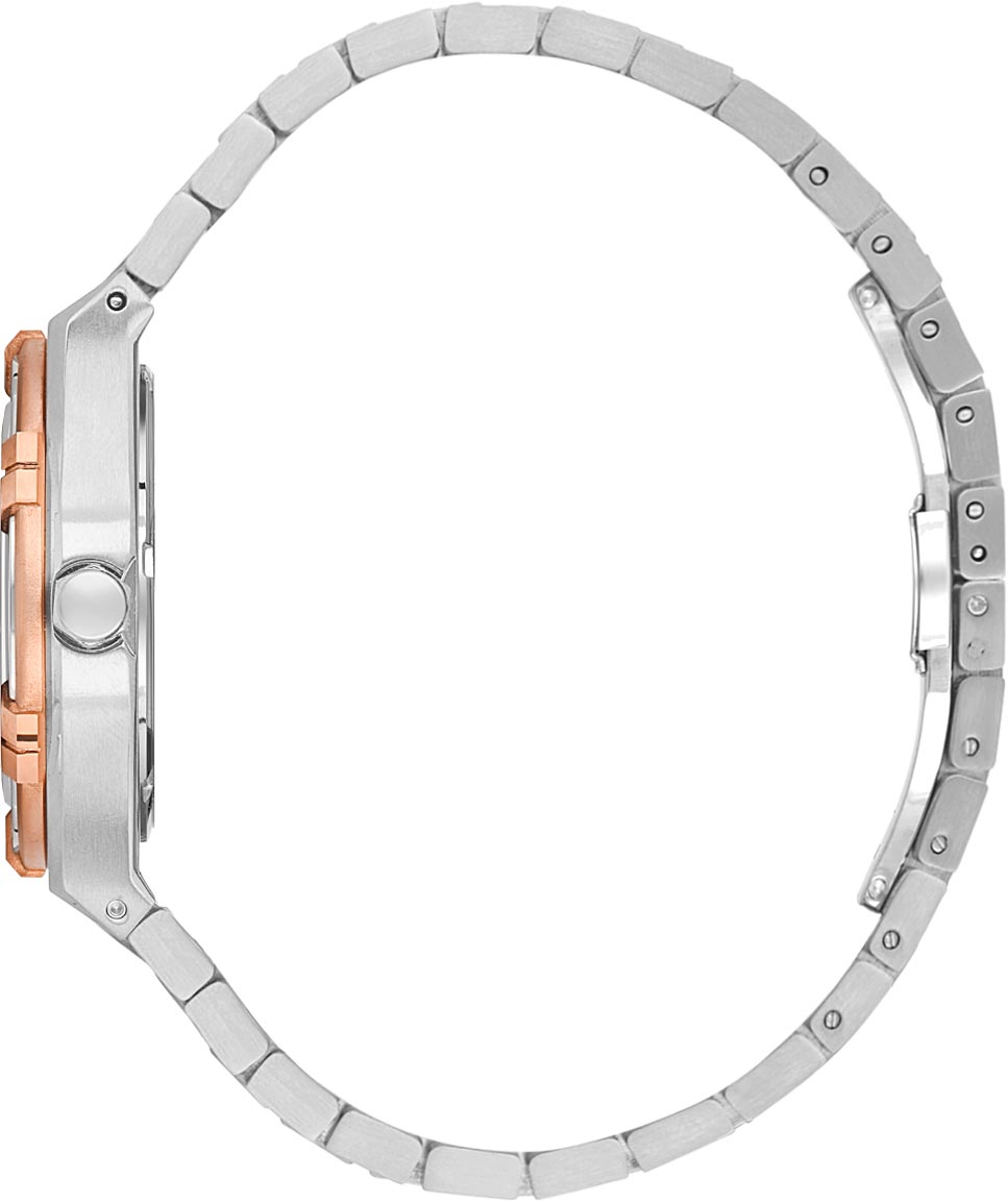 Эти практичные часы комфортно сидят на руке и позволят вам чувствовать себя уверенно в любой обстановке. Женские наручные часы. Круглый стальной корпус с матовой и полированной отделкой. Фактурный циферблат с квадратными ячейками украшен фирменным логотипом. Накладные метки в виде штрихов. Стрелки и метки с люминесцентным покрытием, которое светится в темноте после непродолжительной зарядки на свету. Окошко даты находится в положении 3 часа. Заводная головка в форме болта. Надежный стальной браслет с матовой отделкой. Раскладывающаяся застежка.