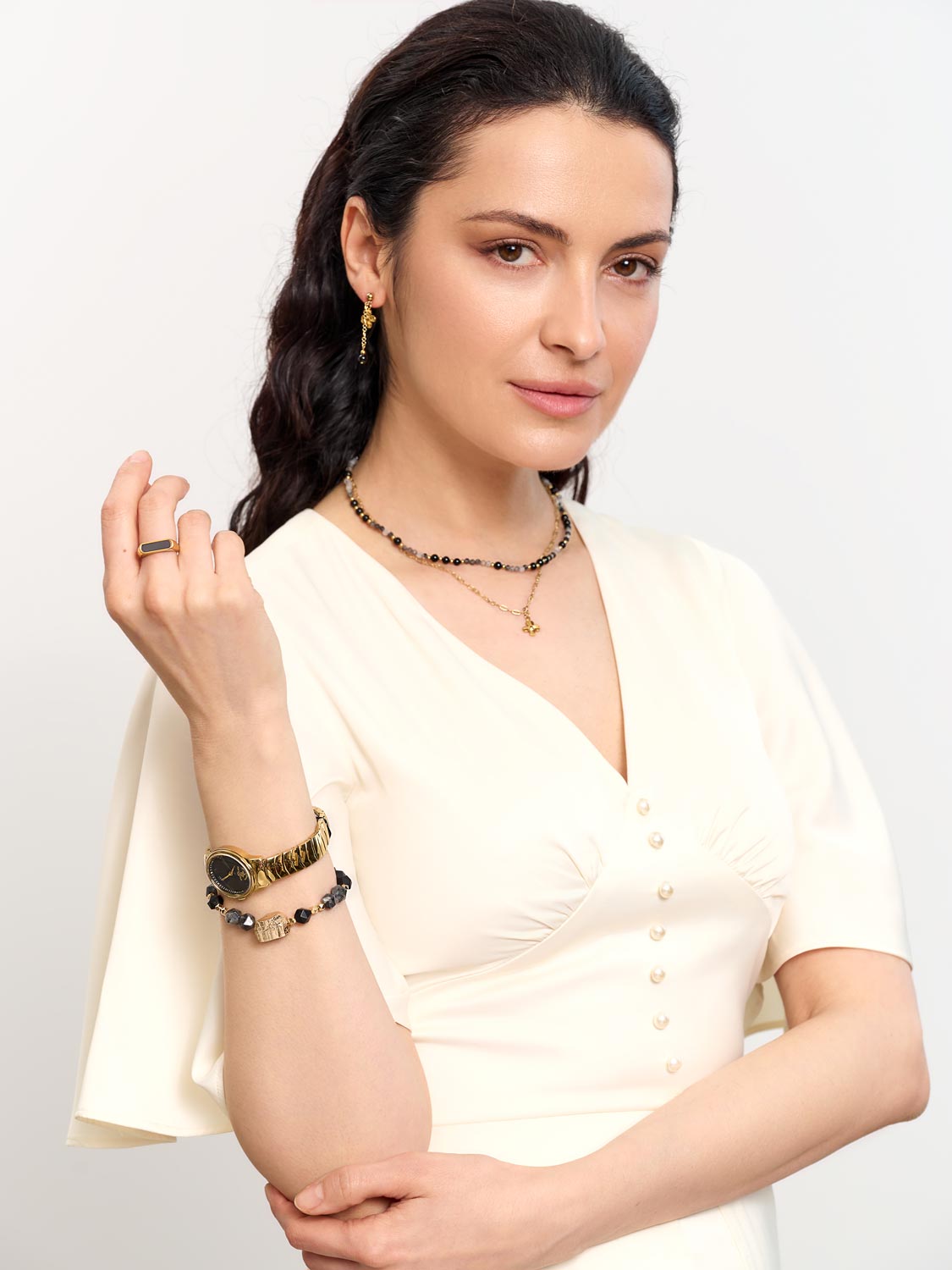 Аккуратный дизайн и четкие линии этих элегантных часов позволяют носить их с любым нарядом. Элегантные женские часы. Стальной овальный корпус с полированной отделкой. Циферблат украшен фирменным логотипом. Метки в виде точек. Рифленая заводная головка. Надежный стальной браслет с полированной отделкой. Раскладывающаяся застежка.