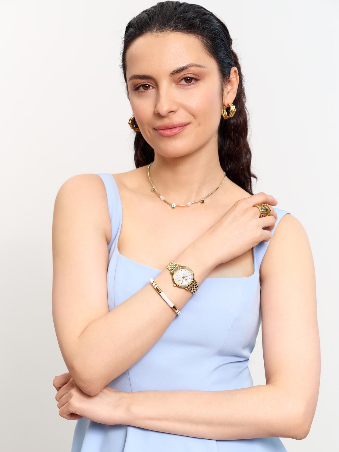 Завораживающее сияние кристаллов непременно покорит сердце настоящей ценительницы прекрасного. Кварцевые наручные женские часы. Круглый стальной корпус. Гильошированный циферблат украшен фирменным логотипом. Накладные метки в виде штрихов украшены кристаллами. Клиновидные стрелки в стиле Dauphine. Рифленая заводная головка в форме трапеции. Надежный стальной браслет с полированной отделкой. Раскладывающаяся застежка.