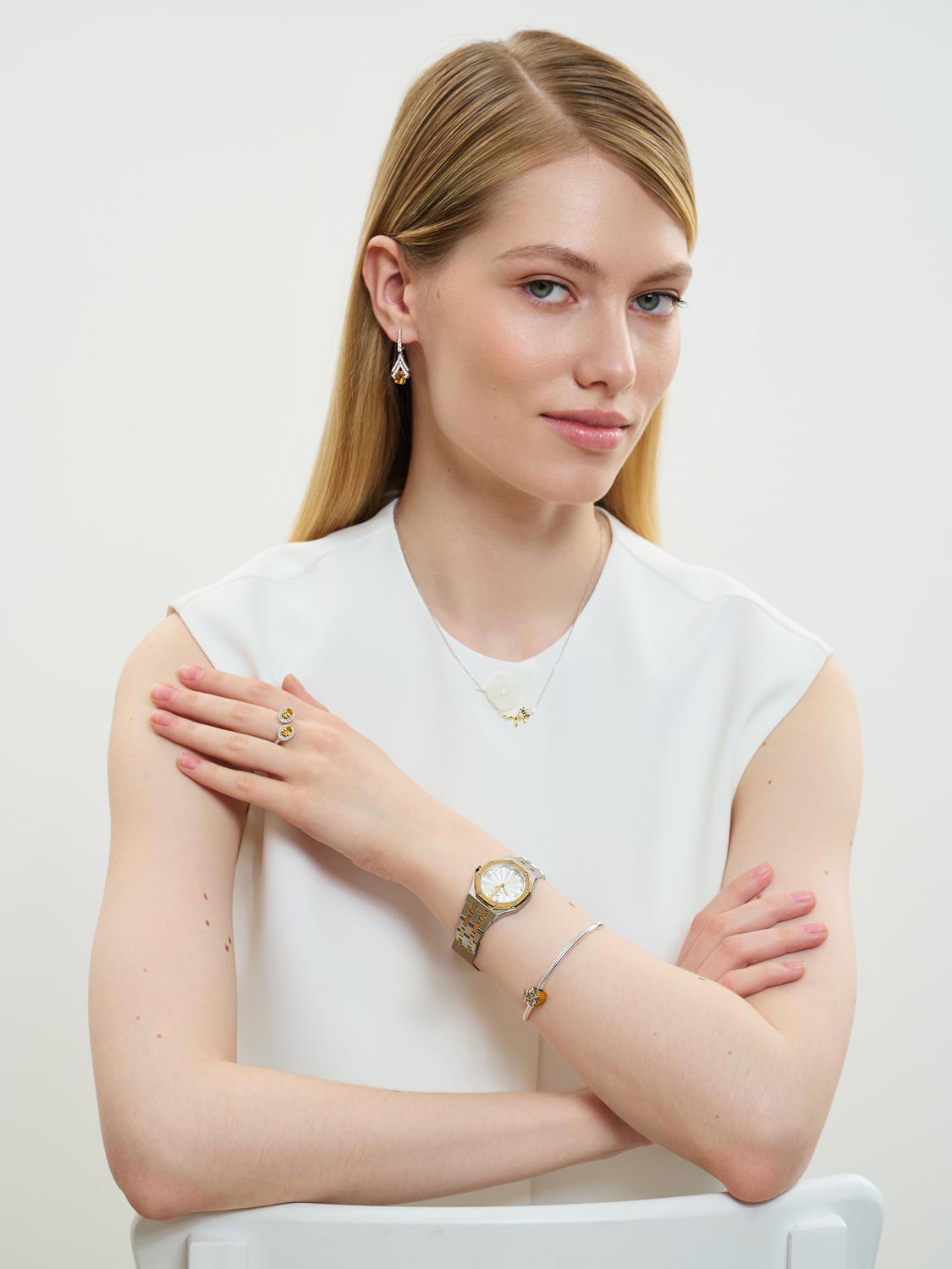 Стильный дизайн и манящий блеск кристаллов — эти часы непременно привлекут к себе восхищенные взгляды окружающих. Наручные женские кварцевые часы. Стальной корпус с декоративным безелем на 8-х винтах. Гильошированный циферблат украшен фирменным логотипом. Накладные метки в виде точек, украшенных кристаллами, и римских цифр. Прямоугольные стрелки в стиле Baton с люминесцентным покрытием, которое светится в темноте после непродолжительной зарядки на свету. Заводная головка в форме болта. Стальной браслет с раскладывающейся застежкой.