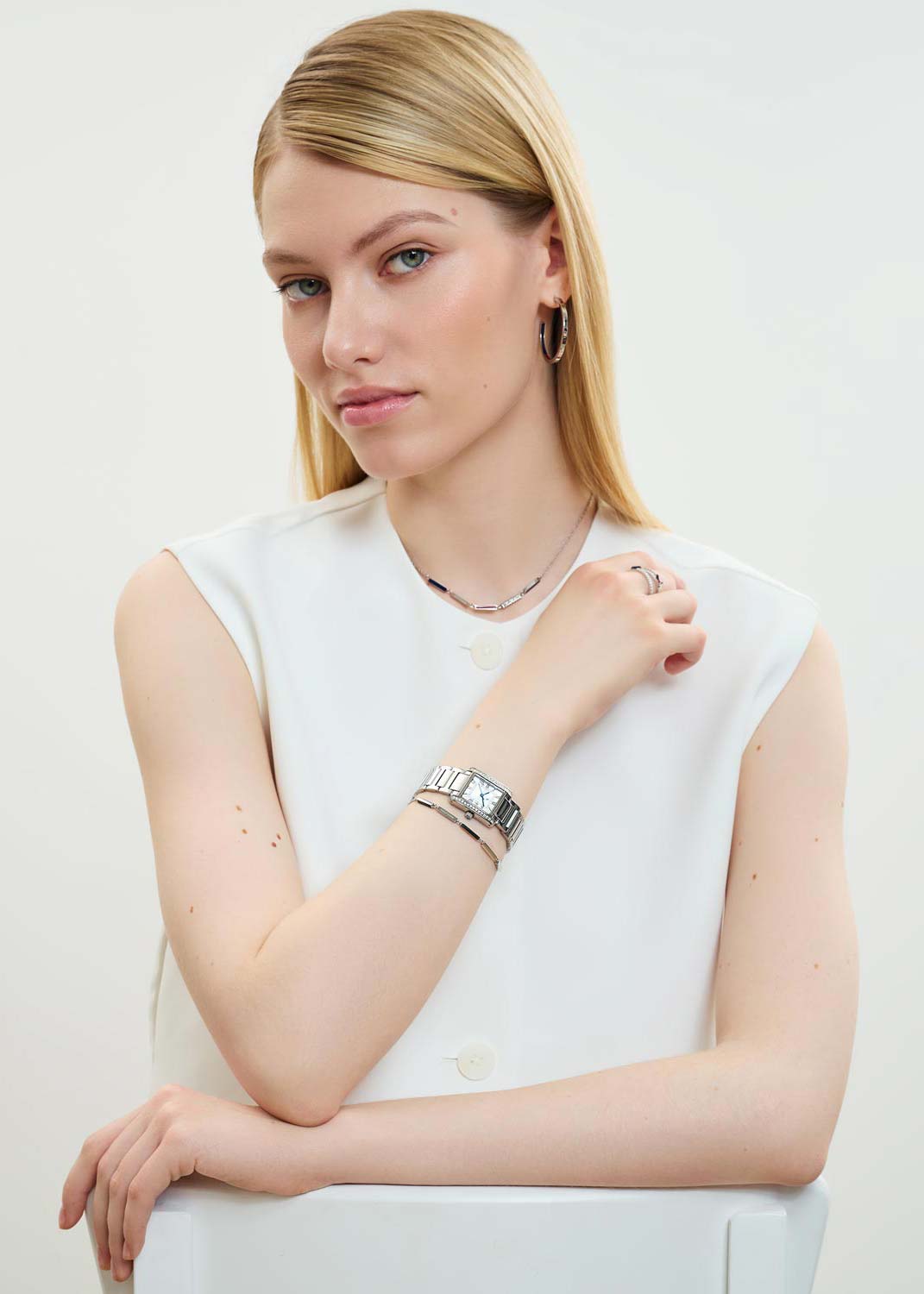 Unique. Женские часы с прямоугольным корпусом. Циферблат выполнен по технологии Sunray (солнечные лучи). Метки в виде римских цифр. Рифленая заводная головка. Надежный стальной браслет с раскладывающейся застежкой.