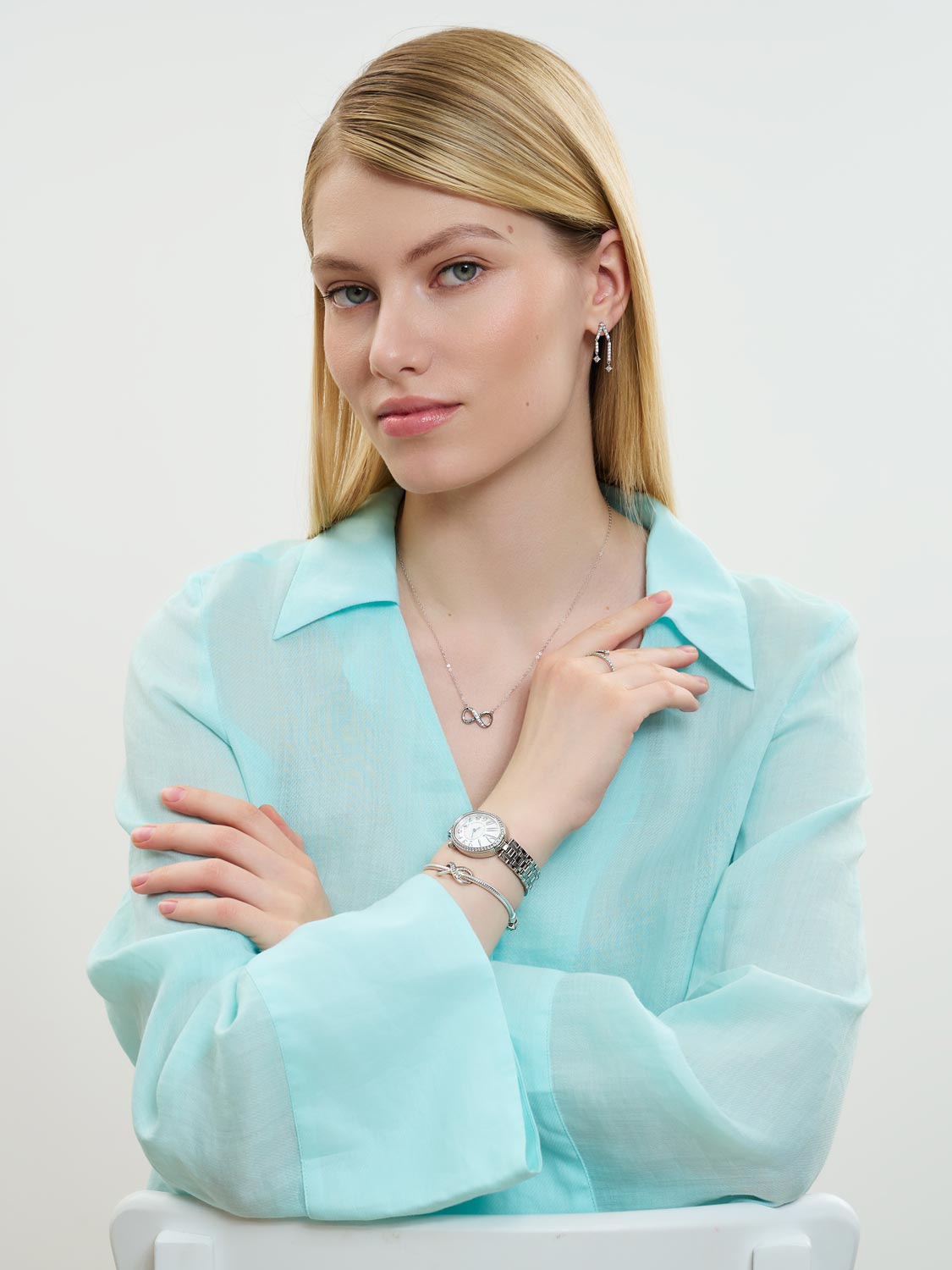Unique. Женские часы с овальным корпусом. Центральная часть перламутрового циферблата украшена гильоше. Метки в виде арабских цифр. Рифленая заводная головка находится в положении 4 часа. Надежный стальной браслет с раскладывающейся застежкой.