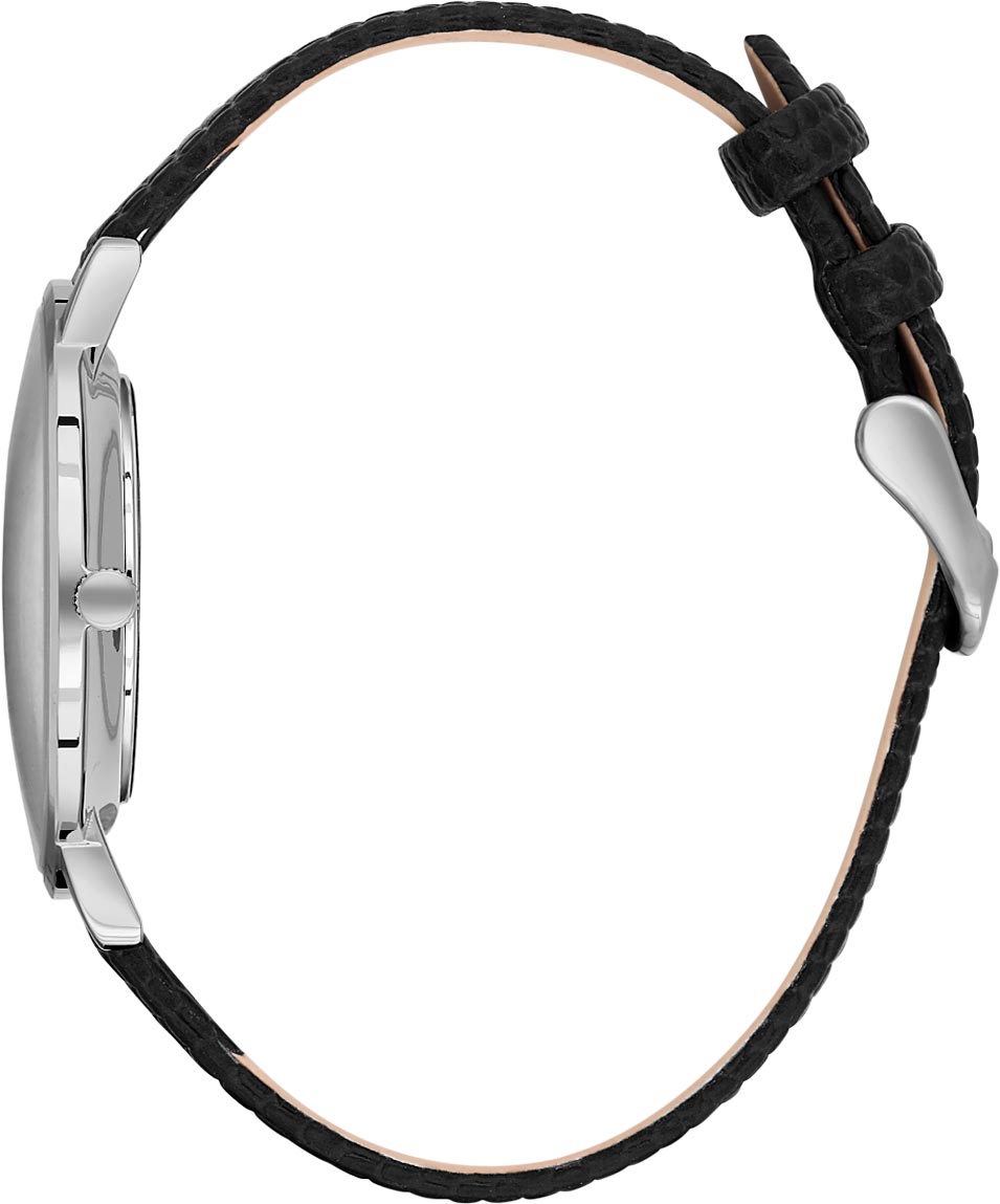 Наручные мужские часы в стальном корпусе. Матовый циферблат украшен фирменным логотипом. Накладные метки в виде штрихов. Окошко даты находится в положении 6 часов. Узкие клиновидные стрелки в стиле Dauphine. Рифленая заводная головка. Удобный кожаный ремешок с классической застежкой. В набор входят фирменный брелок и брендированный кожаный кошелек.