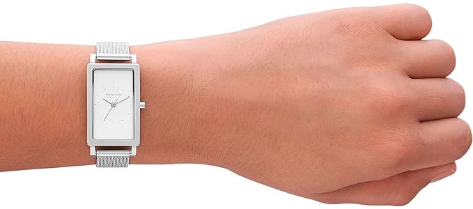 Изящный аксессуар выполнен в сдержанном стиле и создан для любительниц элегантного минимализма. Женские часы. Прямоугольный стальной корпус. Циферблат с метками в виде штрихов. Браслет миланского плетения.